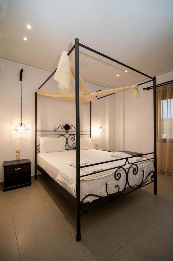 Κάθε μια από αυτές έχει δυο δωμάτια, σαλόνι και υπνοδωμάτιο, ατομικό λουτρό και μεγάλο ιδιωτικό μπαλκόνι με δυνατότητα φιλοξενίας μέχρι και 5 ενηλίκων! Την διακόσμηση τους την έχουμε επιμεληθεί με ιδιαίτερη φροντίδα δίνοντας σε κάθε μια από τις 5 το δικό της ιδιαίτερο στυλ. Έτσι μπορείτε να επιλέξετε ανάμεσα στη σουίτα με το υπέρδιπλο σιδερένιο κρεβάτι και τη ρομαντική διάθεση που δημιουργούν τα κλασσικά στοιχεία διακόσμησης ως τη μοντέρνα εκδοχή της σουίτας με τις κόκκινες αποχρώσεις και τη διάχυτη πολυτέλεια.