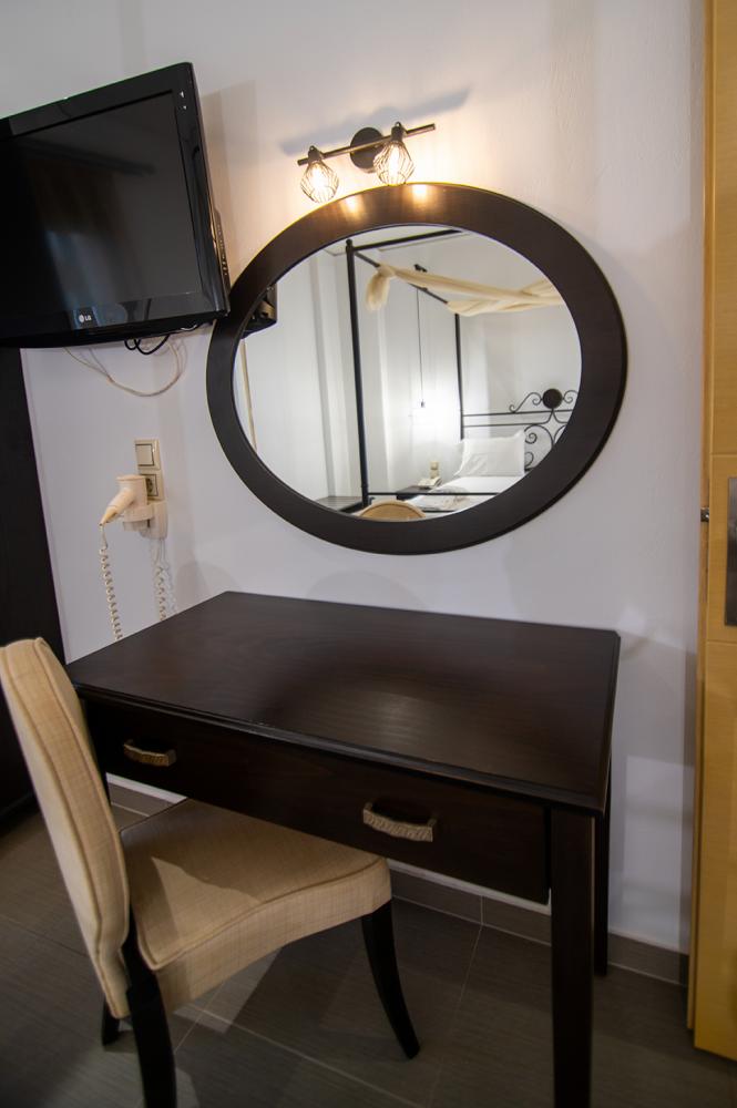 Σε κάθε χώρο διατίθεται κλιματισμός, 2 τηλεοράσεις LCD 32¨και 22¨, mini-bar, σύνδεση στο διαδίκτυο και χρηματοκιβώτιο. Μπορείτε πάντα να απολαύσετε το ποτό ή τον καφές σας στα ευρύχωρα ιδιωτικά μπαλκόνια που κάθε σουίτα μας έχει.